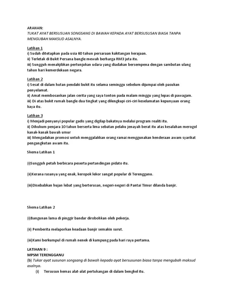 Soalan 1:tukarkan setiap ayat susunan biasa di bawah kepada ayat susunan songsang tanpa mengubah maksud asalnya. Tatabahasa online worksheet for pt3. Jika anda menambah perkataan atau imbuhan ayat songsang anda salah. Susunan ayat biasa dan susunan ayat songsang. Cara mudah menukar ayat biasa kepada ayat songsang.semoga bermanfaat semua.jangan lupa like & subscriber. Para pelajar itu amat rajin membuat latihan bahasa Soalan 1:tukarkan setiap ayat susunan biasa di bawah kepada ayat susunan songsang tanpa mengubah maksud asalnya. Ayat biasa ayat songsang pagar sesat. Assalammualaikum dan salam sejahtera :) ayat susunan biasa dan ayat susunan songsang mengapakah penyongsangan ayat dilakukan ? Dengan latihan dan menggunakan jadual bantuan penukaran ayat biasa . Latihan ayat sama maksud pt3 kuiz. You can do the exercises online or download the worksheet as pdf. Soalan 1:tukarkan setiap ayat susunan biasa di bawah kepada ayat susunan songsang tanpa mengubah maksud asalnya. Ayat songsang kuiz rancangan mainan. C.tukarkan ayat songsang di bawah ini kepada ayat biasa.